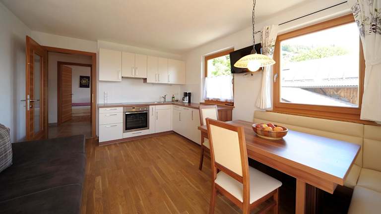 Das Apartment im Rumpelehof bietet eine gemütliche Unterkunft mit einem Balkon, auf dem Sie den Bergblick genießen können. Im Inneren finden Sie einen komfortablen Sitzbereich und einen Flachbild-Sat-TV für Unterhaltung. Die voll ausgestattete Küche verfügt über alle notwendigen Geräte wie Kühlschrank, Geschirrspüler, Backofen, Kochfeld, Kaffeemaschine und Wasserkocher. Das private Badezimmer ist mit einer Dusche und einem Haartrockner ausgestattet. Kostenloses WLAN steht Ihnen ebenfalls zur Verfügung.