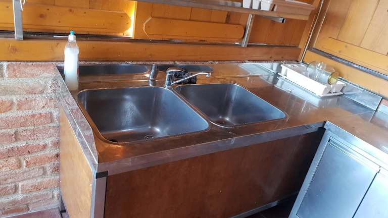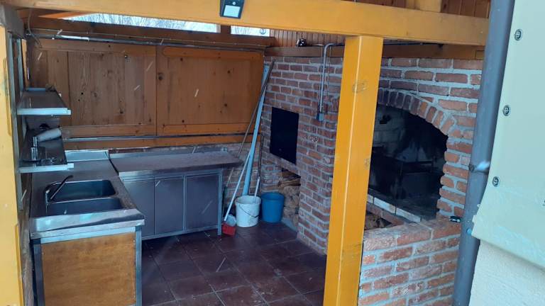 Die gut ausgestattete Küche verfügt über einen Kühlschrank und einen Ofen, ideal für Selbstverpflegung.