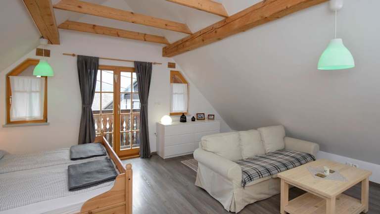 Das Rustic House 13 befindet sich in der malerischen Region Bohinj in Gorenjska. Die Umgebung ist von wunderschöner Natur geprägt und bietet zahlreiche Möglichkeiten für Outdoor-Aktivitäten wie Wandern und Skifahren. Der Aquapark & Wellness Bohinj ist nur 7,2 km entfernt und die berühmte Insel Bled erreichen Sie nach einer kurzen Fahrt von 23 km. Der Flughafen Ljubljana ist mit einer Entfernung von 57 km gut erreichbar.