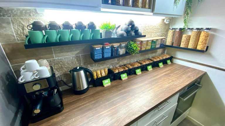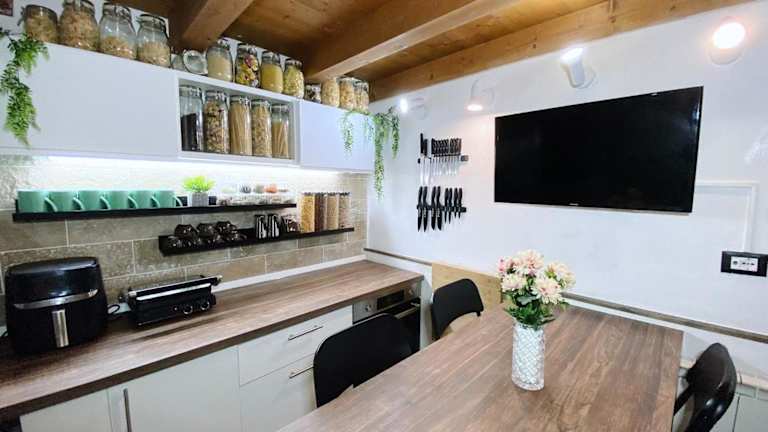 In der Unterkunft wird ein italienisches Frühstück angeboten. Die Küche ist mit einem Kühlschrank, Geschirrspüler, Ofen, Mikrowelle, Herdplatte, Toaster und Wasserkocher ausgestattet.