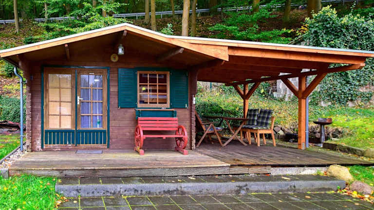 Die Ferienholzhaus Strandbude mit Terrasse bietet eine komfortable Unterkunft in Form eines Chalets. Die Anlage verfügt über einen Garten und eine Terrasse, die zur Erholung einladen.