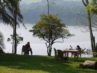 Das Kibale River Camp liegt am Rande des Kibale Forest Nationalparks, einer malerischen und natürlichen Umgebung. Der Nationalpark bietet eine Fülle von Flora und Fauna, darunter Schimpansen und andere Affenarten. Die Umgebung ist ideal für Aktivitäten wie Radfahren und den Besuch des Bigodi-Sumpfes, wo Sie seltene Vogelarten und andere Tiere beobachten können.