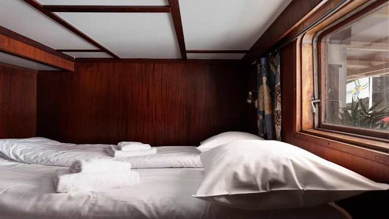 Das Hotel verfügt über insgesamt 90 Zimmer im Kajüten-Stil, die über drei Boote verteilt sind. Die Zimmer sind entweder mit eigenem Bad oder Gemeinschaftsbad ausgestattet. WLAN steht den Gästen kostenlos zur Verfügung.