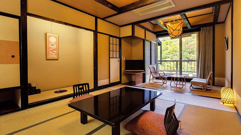 Der Ryokan Fushioukaku bietet seinen Gästen 70 komfortabel ausgestattete Zimmer, die sowohl mit einem Aufzug als auch mit einem 24h-Sicherheitsdienst ausgestattet sind. Die Unterbringung umfasst eine Gepäckaufbewahrung, einen Safe sowie behindertengerechte Einrichtungen. Für die Gäste stehen ein saisonaler Außenpool, ein Innenpool, eine Sonnenterrasse und ein Whirlpool zur Verfügung. Weitere Einrichtungen sind ein Spielzimmer und eine Gemeinschaftslounge in einem schönen Garten.
