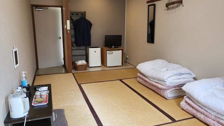 Der Ryokan Kume Himawari Sou bietet Übernachtungsmöglichkeiten mit kostenlosem WLAN und kostenfreiem Privatparkplatz. Die Unterkunft umfasst Familienzimmer und ist ein privat geführter Betrieb. Es wird darauf hingewiesen, dass feierliche Veranstaltungen wie Junggesellenabschiede nicht erlaubt sind.