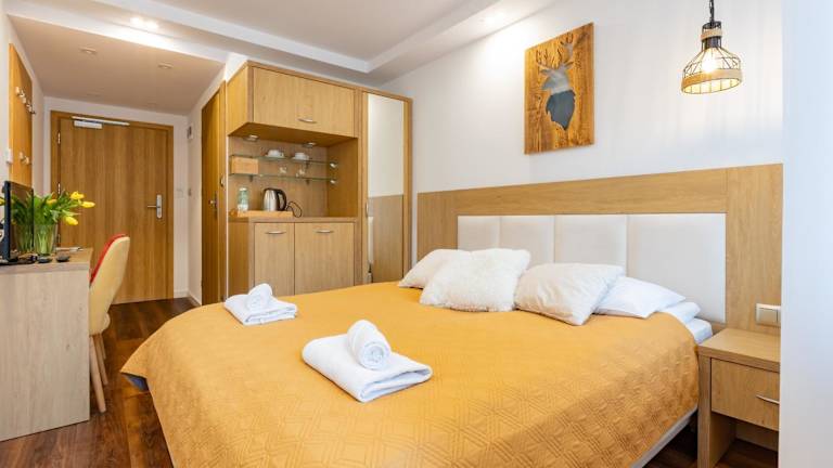 Das Hotel Ryterski bietet eine klassische Einrichtung in warmen Farbtönen. Die Unterkunft verfügt über kostenfreies WLAN, Privatparkplätze sowie verschiedene Freizeiteinrichtungen. Ein Wellnessbereich mit Sauna ist ebenfalls vorhanden, ebenso wie ein Garten mit einem Kinderspielplatz und Grillmöglichkeiten.