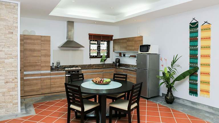 Die Villa besteht aus 3 Schlafzimmern, einem Wohnzimmer und einer voll ausgestatteten Küche, die mit einem Kühlschrank und einer Kaffeemaschine ausgestattet ist. Des Weiteren sind 2 Badezimmer mit Dusche und Haartrockner vorhanden. Handtücher und Bettwäsche werden bereitgestellt.