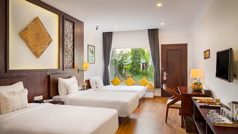 Alle Zimmer des Sabara Angkor Resort & Spa sind mit einem Flachbild-TV ausgestattet und bieten kostenfreies WLAN sowie ein eigenes Bad mit einem Haartrockner. Einige Zimmer verfügen über einen Blick auf den Pool und einen Sitzbereich.