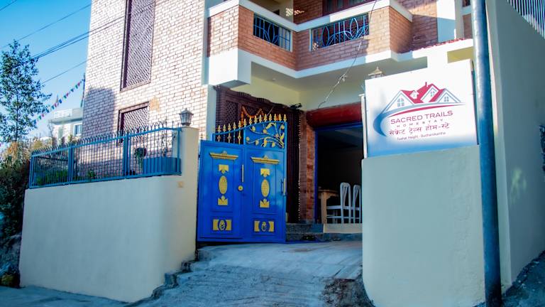 Sacred Trails Homestay bietet Unterkünfte mit Parkettböden, einem Garten, einer Gemeinschaftslounge und einer Terrasse. Kostenloses WLAN ist in der gesamten Unterkunft verfügbar. Die Rezeption ist rund um die Uhr besetzt und ein Businesscenter steht ebenfalls zur Verfügung.