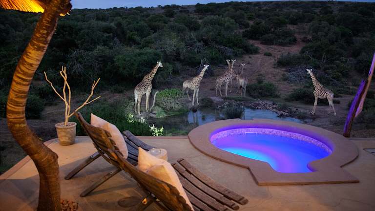 Das Hotel liegt im Wildtierreservat Amakhala und bietet den Gästen eine idyllische Lage inmitten der Natur. Der Flughafen Port Elizabeth ist 88 km entfernt, während der Addo-Elefanten-Nationalpark 76 km entfernt ist. Die Umgebung des Hotels bietet zahlreiche Möglichkeiten für Aktivitäten wie Safaris, Wandern und Vogelbeobachtungen.