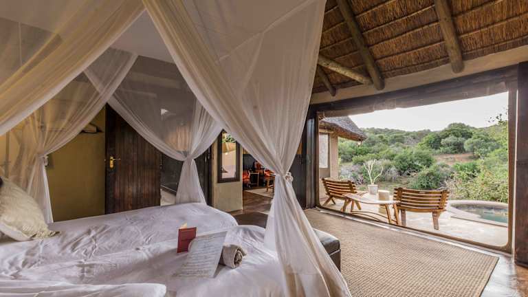 Die Zimmer im Safari Lodge - Amakhala Game Reserve sind im afrikanischen Stil gestaltet und bieten eine elegante und komfortable Unterkunft. Jedes Zimmer verfügt über einen Sitzbereich, einen Safe und ein Moskitonetz. Zur Ausstattung gehört auch ein eigenes Tauchbecken und eine Terrasse, auf der die Gäste die Natur um sich herum genießen können.