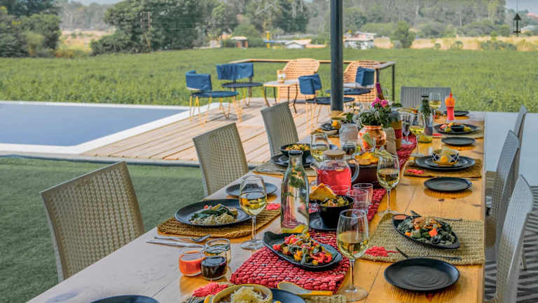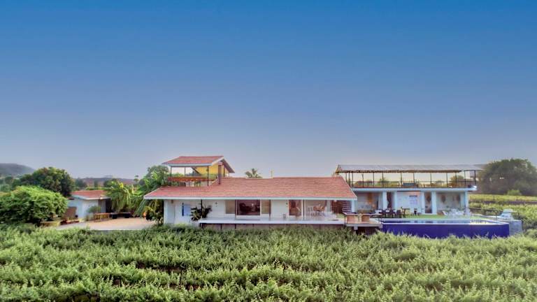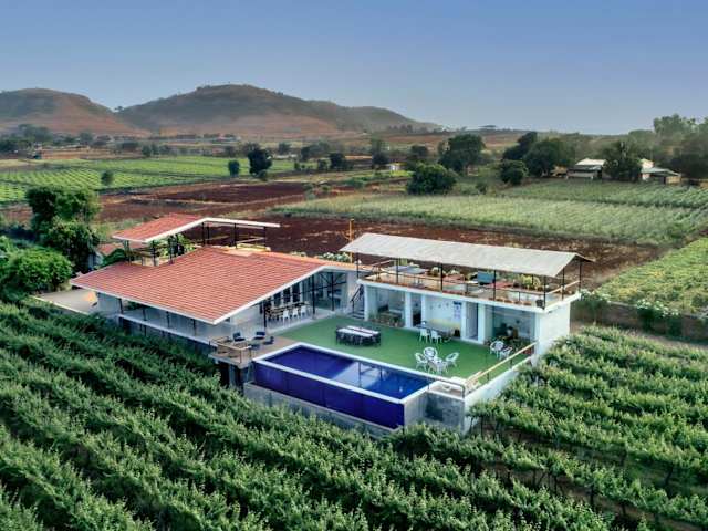 Verbringen Sie Ihren Urlaub in der SaffronStays Onellaa, Nashik - infinity pool villa, die von einem malerischen Weinberg umgeben ist. Genießen Sie den Außenpool, die Terrasse und das kostenfreie WLAN in dieser Villa mit atemberaubendem Gartenblick. Die klimatisierte Villa verfügt über 5 separate Schlafzimmer, 5 Badezimmer mit kostenlosen Pflegeprodukten und einen gemütlichen Sitzbereich. Ein Flachbild-TV sorgt für Unterhaltung. Entdecken Sie die nahe gelegenen Tempel und den Flughafen, der nur 32 km entfernt liegt.