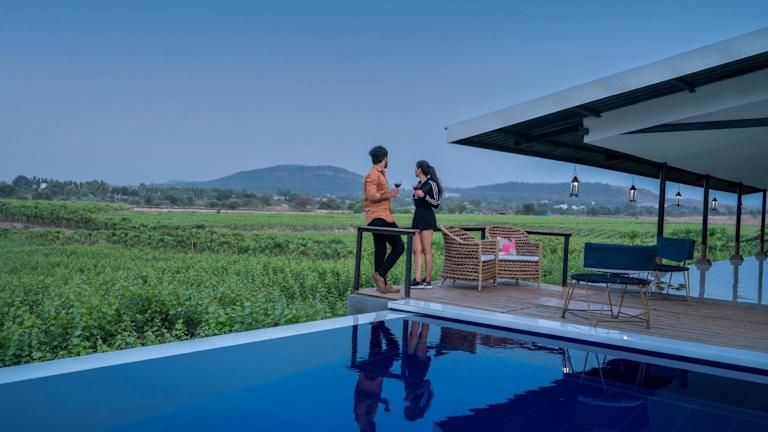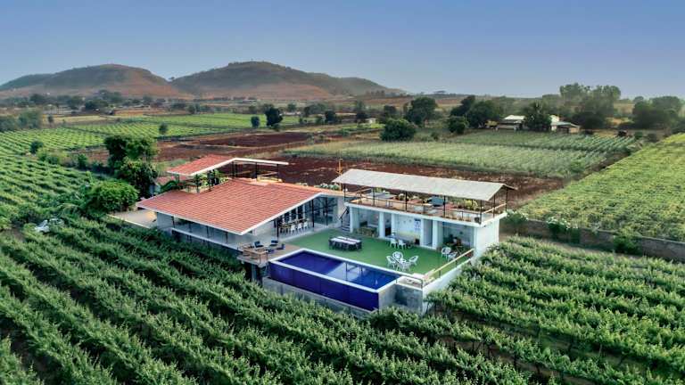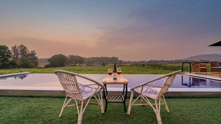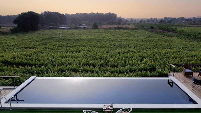 Die SaffronStays Onellaa, Nashik - infinity pool villa befindet sich inmitten eines bezaubernden Weinbergs und bietet eine traumhafte Lage. Entspannen Sie am Außenpool, genießen Sie den atemberaubenden Ausblick von der Terrasse und erkunden Sie die Umgebung. Der Someshwar-Tempel ist nur 5,7 km entfernt und der Sundarnarayan-Tempel erreicht man nach 13 km. Der nächste Flughafen, der Flughafen Nashik, ist nur 32 km entfernt.
