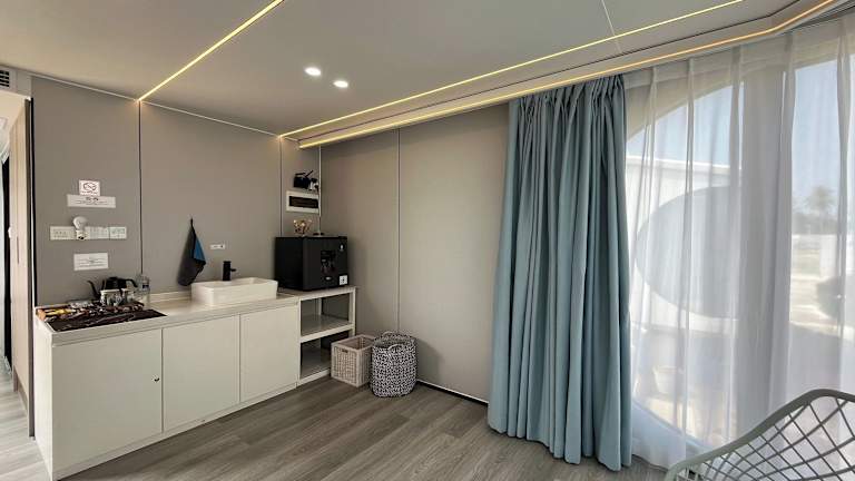 Die Zimmer sind mit einer Klimaanlage, einer Mikrowelle, einer Minibar, einem Wasserkocher, einem Bidet, kostenlosen Pflegeprodukten und einem Schreibtisch ausgestattet. Jedes Zimmer verfügt über ein eigenes Badezimmer mit Dusche und Haartrockner. Einige Wohneinheiten bieten Meerblick. Bettwäsche und Handtücher sind ebenfalls vorhanden.
