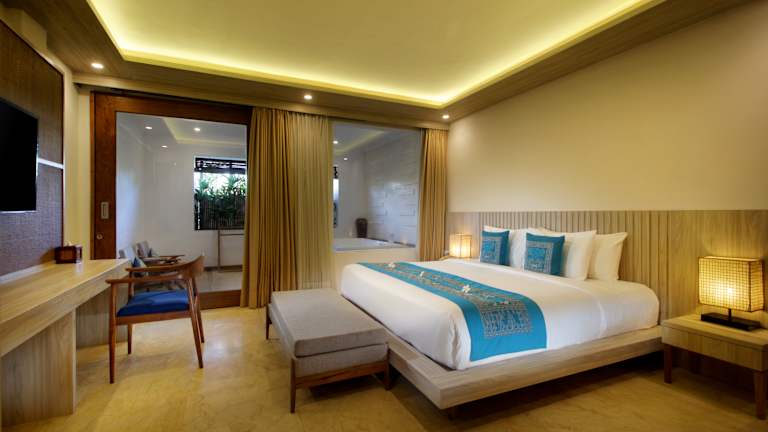 Die hellen und geräumigen Suiten und Villen im Sagara Villas and Suites Sanur bieten Ihnen eine komfortable und stilvolle Unterkunft. Die Zimmer verfügen über einen großen Wohn- und Essbereich sowie moderne Unterhaltungssysteme. Die Villen bieten Ihnen zusätzlich private Gärten und Pools sowie eine voll ausgestattete Küche. Das Badezimmer verfügt über eine erfrischende Regendusche im Freien.