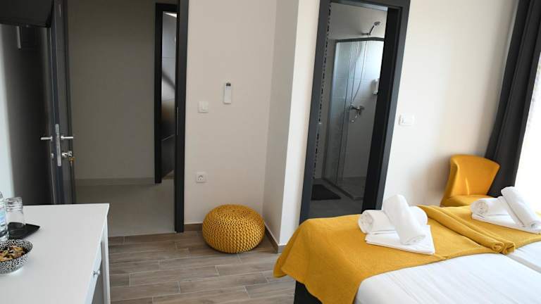 Die klimatisierten Hotelzimmer in den Sagena Rooms sind komfortabel und bieten alles, was Sie für einen angenehmen Aufenthalt benötigen. Jedes Zimmer verfügt über einen Schreibtisch, einen Flachbild-TV und ein eigenes Bad. Bettwäsche und Handtücher werden gestellt und eine Terrasse mit Meerblick lädt zum Entspannen ein. Ein Kleiderschrank sorgt für ausreichend Stauraum.