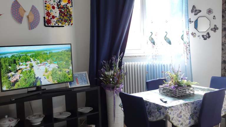 Die Ferienwohnung besteht aus 2 Schlafzimmern, einem Wohnzimmer, einer voll ausgestatteten Küche, einem Kühlschrank, einer Kaffeemaschine und einem Badezimmer mit Bidet und Dusche. Handtücher und Bettwäsche werden bereitgestellt. Zu den weiteren Annehmlichkeiten zählen Klimaanlage und WLAN.