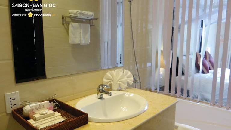 Die klimatisierten Zimmer im Sài Gòn - Bản Giốc Resort sind komfortabel und stilvoll eingerichtet. Jedes Zimmer verfügt über einen Kleiderschrank, einen Flachbild-TV und einen Balkon mit Blick auf die Berge. Das private Badezimmer ist mit kostenlosen Pflegeprodukten ausgestattet und in jedem Zimmer finden Sie außerdem Bettwäsche, Handtücher und eine iPod-Dockingstation.