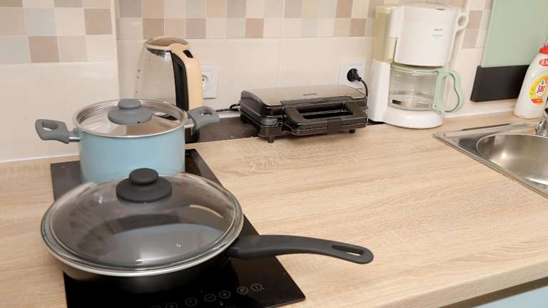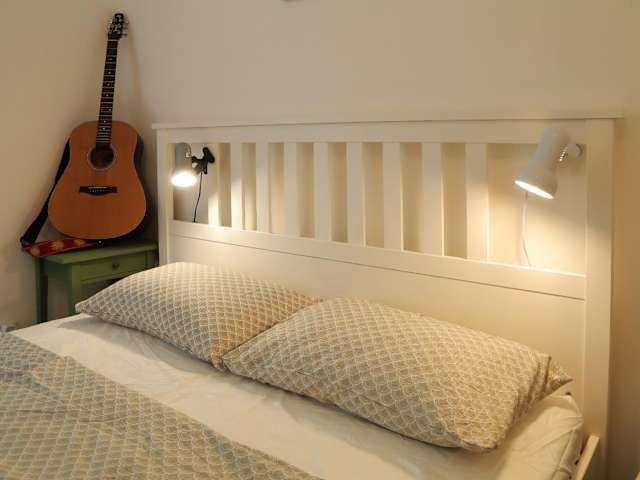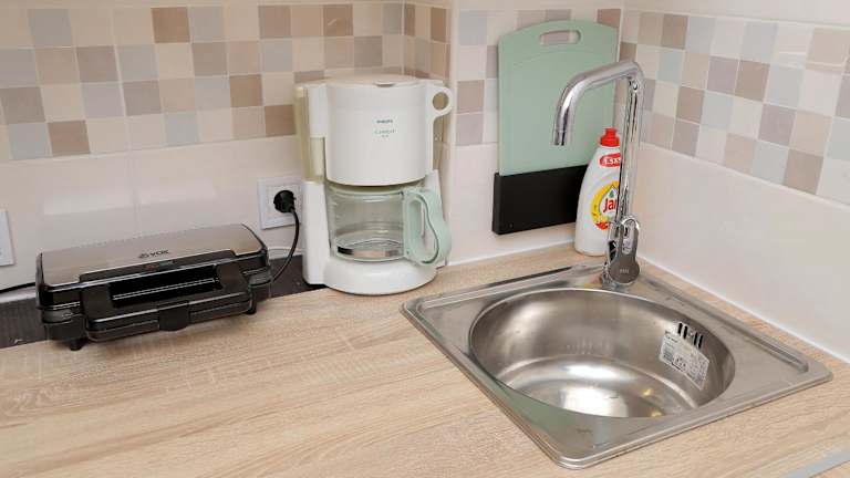 Die Ferienwohnung enthält ein Schlafzimmer, eine Küchenzeile ausgestattet mit Kühlschrank und Herdplatte sowie ein Badezimmer mit Dusche und kostenlosen Pflegeprodukten. Handtücher und Bettwäsche werden bereitgestellt. Die Zimmer sind schallisoliert und eine Waschmaschine ist ebenfalls vorhanden.