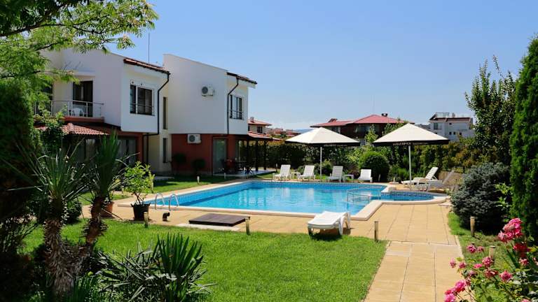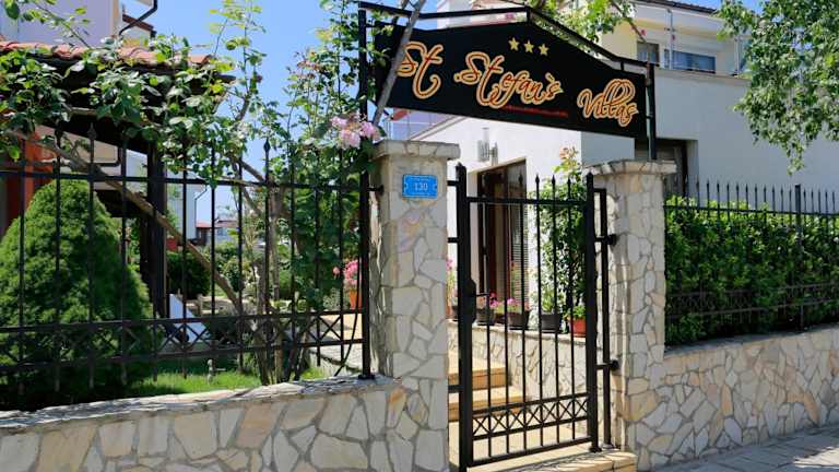 Entdecken Sie die Saint Stefan Villas, eine charmante Ferienanlage mit fünf Villen, nur 2 km südlich von Sozopol auf der Halbinsel Budjaka gelegen. Genießen Sie den atemberaubenden Panoramablick auf die Schwarzmeerküste und profitieren Sie von Annehmlichkeiten wie einem Außenpool und kostenfreiem WLAN. Die Villen bieten komfortable Unterkünfte mit klimatisierten Schlafzimmern, Sat-TV, voll ausgestatteter Küche und eigenem Bad. Entspannen Sie im grünen Hof mit Grillplatz oder erkunden Sie die nahegelegenen Strände und Restaurants.