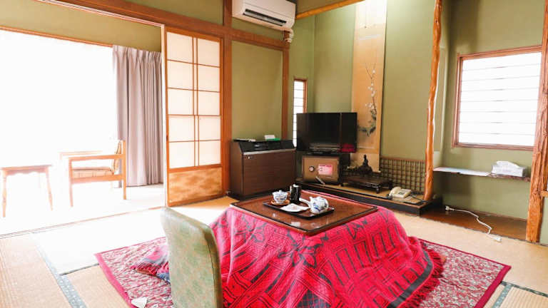 Die Zimmer im Sakaenoyu Ryokan sind im japanischen Stil gestaltet und verfügen über Tatamiböden, traditionelle Futonbetten sowie einen Sitzbereich. Zur Ausstattung gehören ein TV, ein Kühlschrank und ein Wasserkocher. Gäste erhalten Yukata-Roben, kostenfreie Pflegeprodukte und ein Set mit grünem Tee. Es stehen Gemeinschaftsbäder und -WCs zur Verfügung.