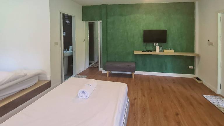 Die Zimmer im Saksupha Resort sind mit einem Flachbild-TV ausgestattet. Einige Wohneinheiten bieten zudem einen Blick auf den Pool.