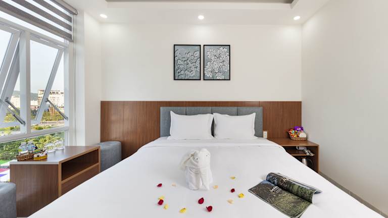 Das SALAH HOTEL befindet sich in Quy Nhon, nur 600 m vom Strand entfernt. Diese Lage ermöglicht es den Gästen, bequem zum Strand zu gelangen und die Schönheit der Küste zu erleben. Der Queen's Beach ist ebenfalls in der Nähe und bietet weitere Möglichkeiten zur Entspannung und Erholung. Der Flughafen Phu Cat liegt nur 33 km vom Hotel entfernt, so dass die Anreise einfach und unkompliziert ist.