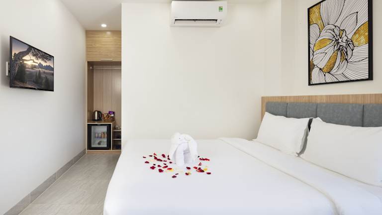 Das SALAH HOTEL in Quy Nhon bietet seinen Gästen einen angenehmen Aufenthalt in der Nähe des Strandes. Mit seinem Tourenschalter, allergikerfreundlichen Zimmern und kostenfreiem WLAN ist es eine ideale Wahl für Reisende. Genießen Sie den Zimmerservice, die 24-Stunden-Rezeption und die Gepäckaufbewahrung. Die Zimmer sind komfortabel eingerichtet und verfügen über moderne Annehmlichkeiten wie Flachbild-TV und Klimaanlage. Einige Zimmer haben sogar einen Balkon, von dem aus Sie die Aussicht genießen können. Entdecken Sie den Queen's Beach, der nur wenige Kilometer entfernt liegt, und lassen Sie sich vom freundlichen Personal des Hotels bei der Organisation von Aktivitäten unterstützen.