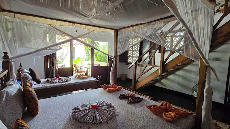 Die Salama & Mbuyuni Bungalows in Matemwe bieten ihren Gästen einen entspannten und komfortablen Aufenthalt inmitten einer schönen Umgebung. Mit ihrem Restaurant, Außenpool, Garten und Bar gibt es viele Möglichkeiten, die Freizeit zu genießen. Die Zimmer verfügen über eine Terrasse und sind mit modernen Annehmlichkeiten ausgestattet. Das Hotel bietet auch kostenfreies WLAN und ein leckeres Frühstück. Die Nähe zur Insel Mnemba und zum Strand macht es zu einem idealen Ausgangspunkt, um die Umgebung zu erkunden.