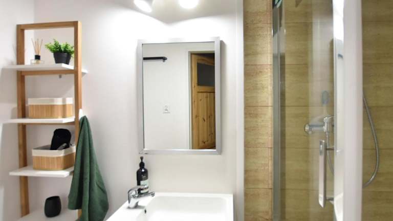 Die Ferienwohnung umfasst 1 Schlafzimmer, ein Wohnzimmer, ein Badezimmer mit einer Dusche und einem Haartrockner sowie die Bereitstellung von Handtüchern und Bettwäsche.