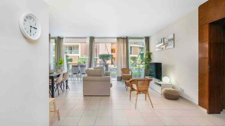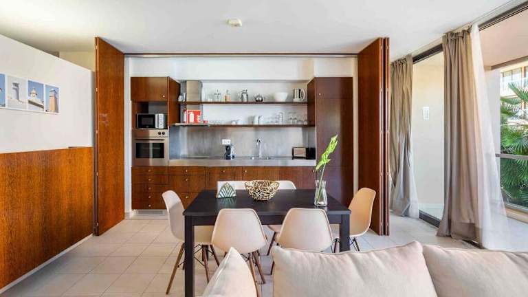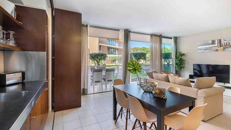 Die Ferienwohnung ist ausgestattet mit 2 Schlafzimmern, einer Küche mit Kühlschrank und Geschirrspüler, einem Flachbild-TV, einem Sitzbereich sowie 2 Badezimmern, die mit einem Bidet ausgestattet sind. Handtücher und Bettwäsche werden zur Verfügung gestellt.