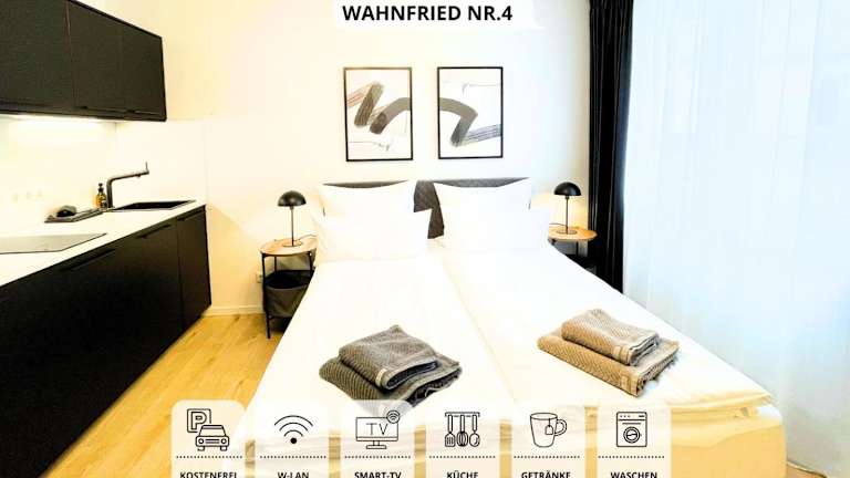 Das Apartment verfügt über ein Schlafzimmer, eine voll ausgestattete Küche mit Kühlschrank und Geschirrspüler sowie ein Badezimmer mit Dusche, kostenfreien Pflegeprodukten und einer Waschmaschine. Handtücher und Bettwäsche werden gestellt, um Ihnen einen angenehmen Aufenthalt zu ermöglichen.