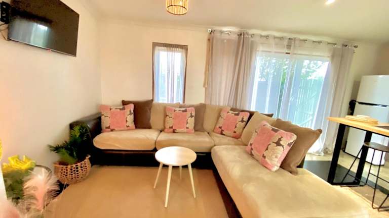 Das klimatisierte Ferienhaus verfügt über 2 Schlafzimmer, ein gemütliches Wohnzimmer und eine voll ausgestattete Küche mit Kühlschrank und Kaffeemaschine. Das Badezimmer ist mit einer Dusche und kostenlosen Pflegeprodukten ausgestattet. Handtücher und Bettwäsche werden im Ferienhaus gestellt, sodass Sie sich um nichts kümmern müssen.