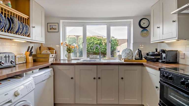 Das Ferienhaus hat insgesamt 4 Schlafzimmer und eine voll ausgestattete Küche, die mit einem Kühlschrank und einem Geschirrspüler eingerichtet ist. Es sind 2 Badezimmer vorhanden, die sowohl mit einer Dusche als auch mit einer Badewanne ausgestattet sind. Handtücher und Bettwäsche werden bereitgestellt.