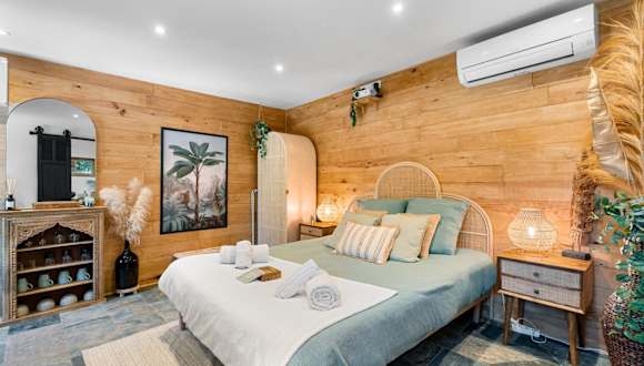 Samadhi - Gite avec jardin et spa bietet Unterkünfte mit Garten und kostenlosem WLAN sowie einem Panoramablick auf die Berge. Das Ferienhaus umfasst einen kostenlosen Privatparkplatz und ist mit Annehmlichkeiten wie einem Whirlpool ausgestattet. Check-in ist zwischen 16:00 und 20:00 Uhr möglich, während der Check-out bis 10:00 Uhr erfolgt. Die Unterkunft ist für Feierlichkeiten wie Junggesellenabschiede nicht geeignet.