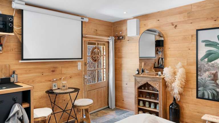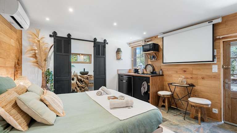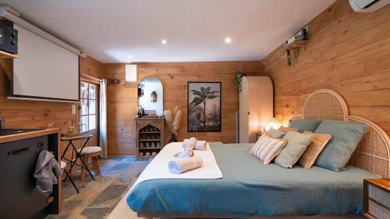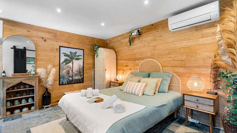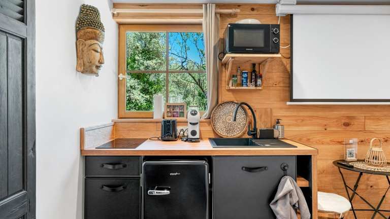 Das Ferienhaus verfügt über ein Schlafzimmer und ein Badezimmer, welches mit einer Dusche, einem Whirlpool sowie kostenlosen Pflegeprodukten ausgestattet ist. Die Küche beinhaltet einen Kühlschrank, Ofen, Mikrowelle, Kaffeemaschine und Wasserkocher. Die Unterkunft ist klimatisiert und bietet Nichtraucherzimmer.