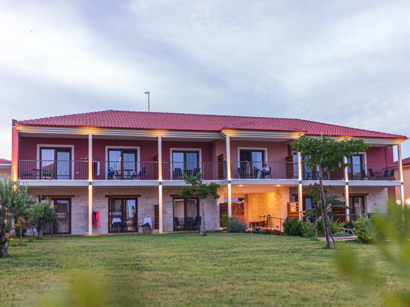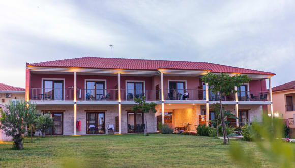 Nette,gepflegte,familiengefuehrte Anlage mit grossem Garten und Pool, in ruhiger zentraler Lage, nur 5 Gehminuten in das malerische Dorf Afitos mit zahlreichen kleinen Laeden, Bars und Tavernen, kostenfreie Parkplaetze verfuegbar, ca.15 Gehminuten zum Strand. Kostenfreier WLAN in allen oeffentlichen Bereichen . Geraeumige, helle Zimmer mit Balkon oder Terrasse mit Aussicht auf den Garten und Pool. Bei der Ausgestaltung achteten wir besonders auf die lokalen Traditionen und Verwendung von Naturmaterialien wie Stein und Holz in Verbindung mit modernem, zeitlosem Design.
