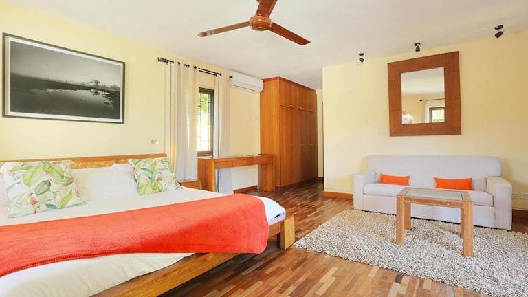 Die Unterkunft bietet fünf separate Schlafzimmer und ein Wohnzimmer. Die voll ausgestattete Küche ermöglicht Selbstverpflegung, und es gibt insgesamt vier Badezimmer. Zu den Annehmlichkeiten gehört ein Flachbild-TV, und die Villa ist klimatisiert.