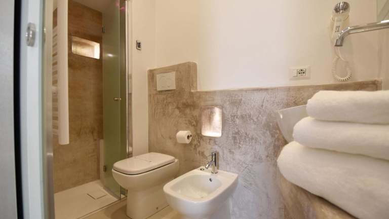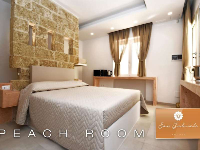 Die Zimmer im San Gabriele Relais sind mit einer Klimaanlage, einem Flachbild-TV und einem eigenen Badezimmer ausgestattet, das über ein Bidet und einen Haartrockner verfügt. Zu den Annehmlichkeiten gehören ein Kühlschrank, eine Mikrowelle sowie ein Wasserkocher. Die Gestaltung der Zimmer bietet einen modernen Rahmen für einen angenehmen Aufenthalt.