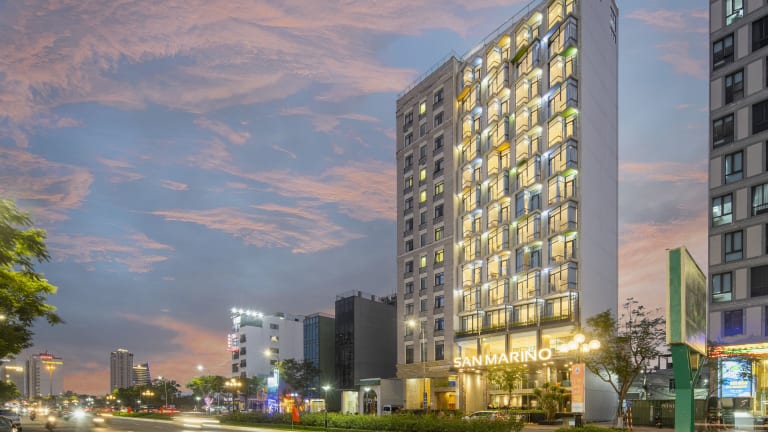 Das San Marino Boutique Danang bietet eine angenehme Unterkunft mit modernen Annehmlichkeiten. Zu den Einrichtungen zählen ein Outdoor-Pool, ein Kinderpool, ein Restaurant, eine Bar und ein Café. WLAN steht in der gesamten Unterkunft zur Verfügung. Weitere Services umfassen eine 24-Stunden-Rezeption, medizinische Betreuung, Zimmerservice und einen Fahrradverleih. Auch ein Business-Center mit Tagungseinrichtungen steht bereit. Die Unterkunft bietet zudem ein eigenes Shuttle-Service.