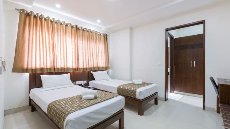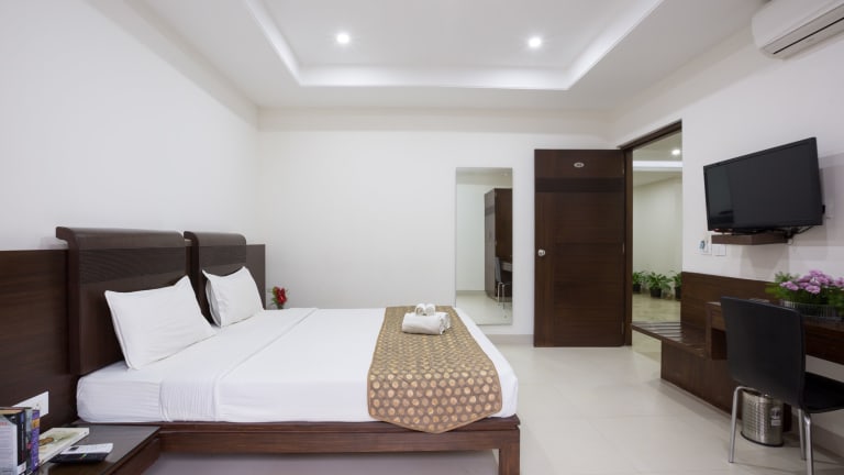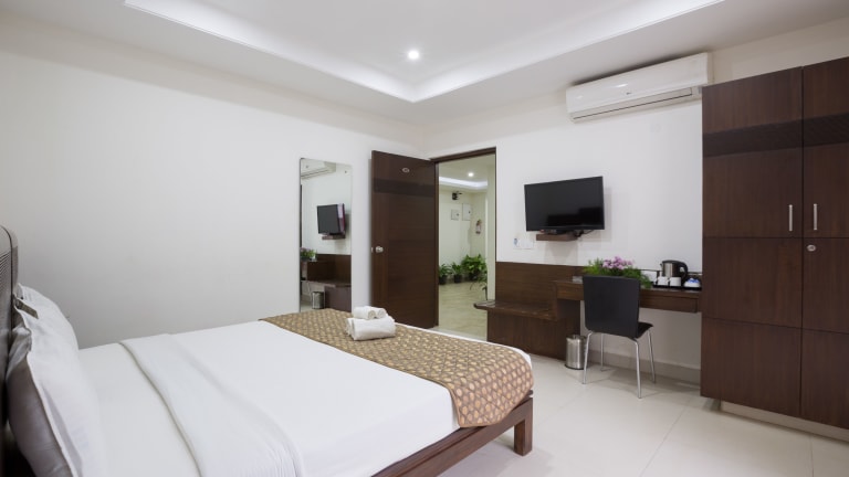 Das Sanctum Suites Bel Road in Bangalore ist die ideale Unterkunft für Reisende, die Wert auf kostenfreies WLAN und eine günstige Lage legen. Die komfortablen Zimmer bieten alles, was man für einen angenehmen Aufenthalt benötigt, einschließlich Flachbild-TV, Safe und Kaffee- und Teezubereitungsmöglichkeiten. Das kostenfreie Frühstücksbuffet sorgt für einen guten Start in den Tag und überdachte Parkplätze stehen zur Verfügung. Mit seiner Nähe zu verschiedenen Sehenswürdigkeiten und dem internationalen Flughafen Kempegowda ist das Hotel der perfekte Ausgangspunkt, um Bangalore zu erkunden.