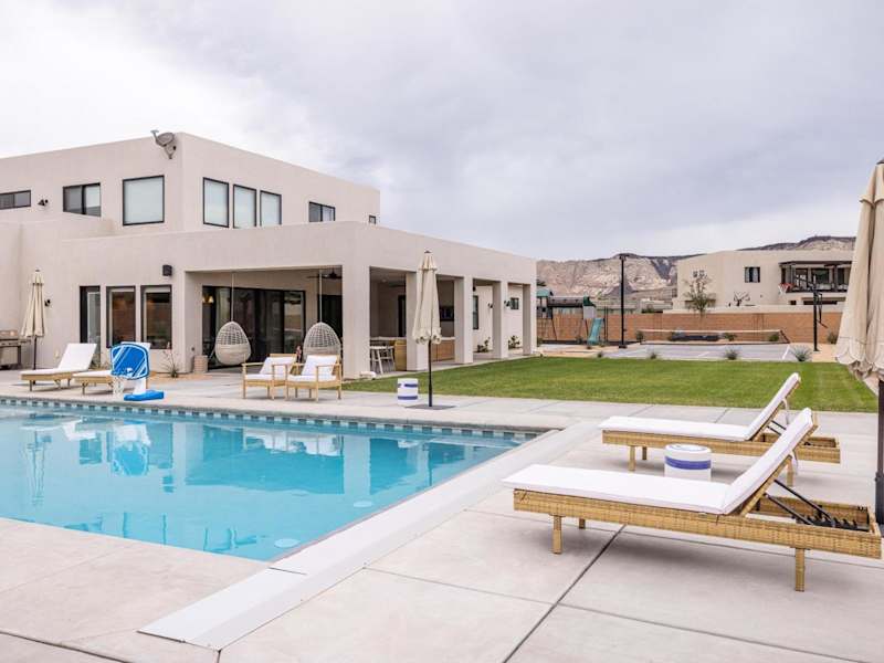 Die Sand Cove Villa at The Ledges with Private Pool in Ivins ist die perfekte Unterkunft für einen luxuriösen und erholsamen Urlaub. Hier genießen Sie nicht nur ein klimatisiertes Ferienhaus mit eigenem Pool, sondern auch eine 24-Stunden-Rezeption und kostenfreies WLAN. Die Unterkunft bietet 7 Schlafzimmer, 8 Badezimmer, einen Essbereich und eine voll ausgestattete Küche. Der Balkon bietet einen herrlichen Blick auf die umliegenden Berge. Erkunden Sie die historischen Stätten in der Umgebung oder entspannen Sie einfach im privaten Pool. Der Flughafen St. George ist nur 27 km entfernt.