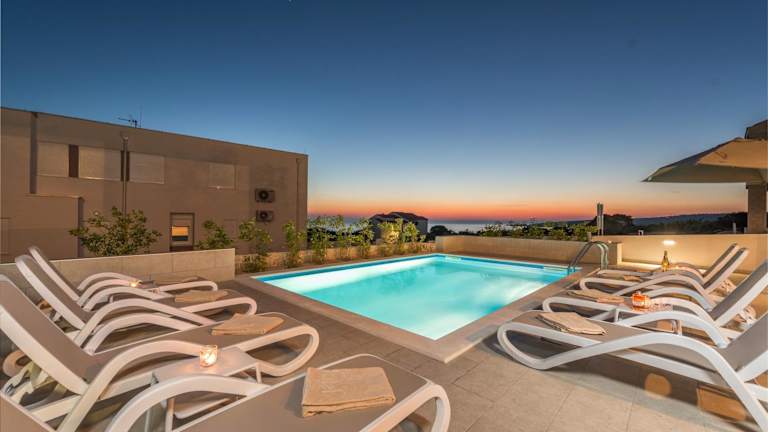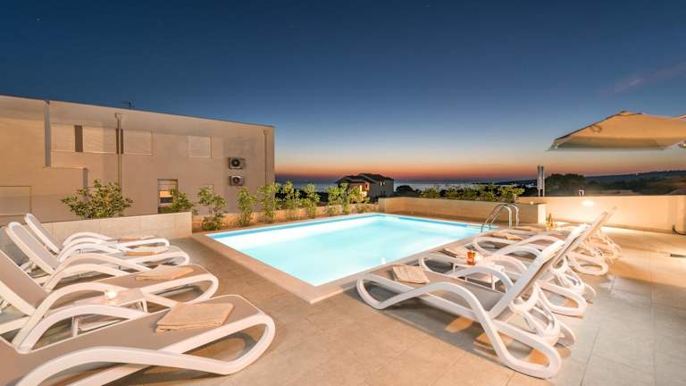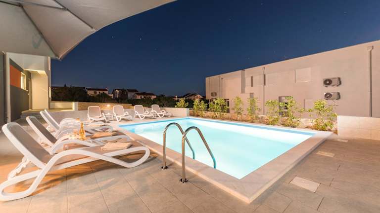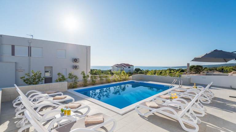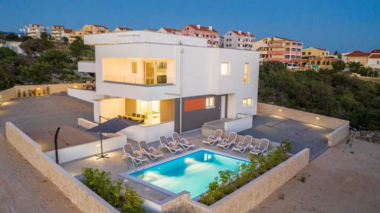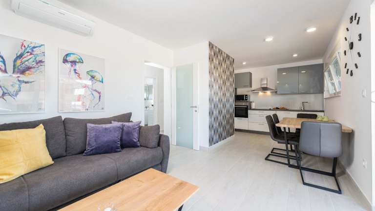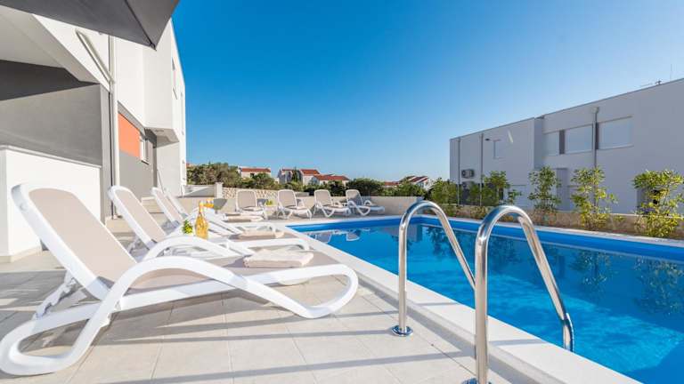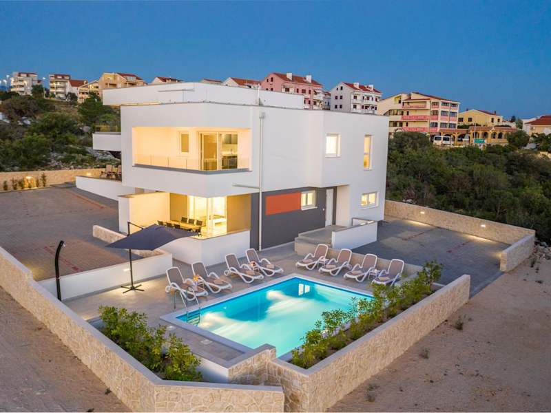 Die Unterkunft befindet sich in Novalja, nur 350 Meter vom Strand Babe entfernt. Die Umgebung bietet Zugang zu einem saisonalen Außenpool sowie einem Garten und einer Terrasse.