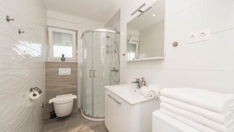 Das Apartment verfügt über zwei Schlafzimmer, ein Wohnzimmer sowie eine voll ausgestattete Küche mit Kühlschrank und Kaffeemaschine. Es sind zwei Badezimmer vorhanden, eines mit Dusche und eines mit Whirlpool. Klimaanlage ist ebenfalls gegeben. Handtücher und Bettwäsche werden bereitgestellt.