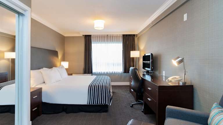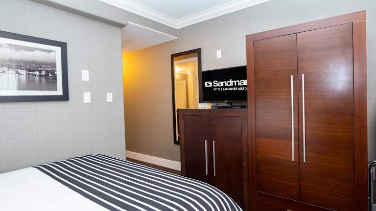 Das Sandman Hotel Vancouver Airport verfügt über 171 moderne Zimmer, die komfortabel eingerichtet sind. Die Zimmer sind mit Annehmlichkeiten wie einer Kaffeemaschine, einem Flachbildfernseher und kostenlosem WLAN ausgestattet. Zur weiteren Ausstattung gehören ein Schreibtisch, ein Kühlschrank und eine Mikrowelle. Alle Zimmer sind Nichtraucherzimmer und verfügen über ein eigenes Bad mit Badewanne oder Dusche.