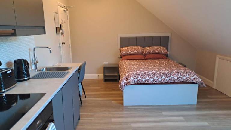 Das Sands House - luxury modern studios with secure parking in Epsom, Surrey bietet luxuriöse und moderne Studios mit kostenfreiem WLAN und sicheren Parkplätzen. Die Unterkunft ist ideal gelegen, um die Umgebung von Epsom zu erkunden und Sehenswürdigkeiten wie die Chessington World of Adventures zu besuchen. Die Studios verfügen über eine voll ausgestattete Küche, einen Flachbild-Sat-TV und ein eigenes Bad. Entspannen Sie im Garten und genießen Sie die Nähe zum Nonsuch Park. Ein perfekter Ort, um Surrey zu erkunden.