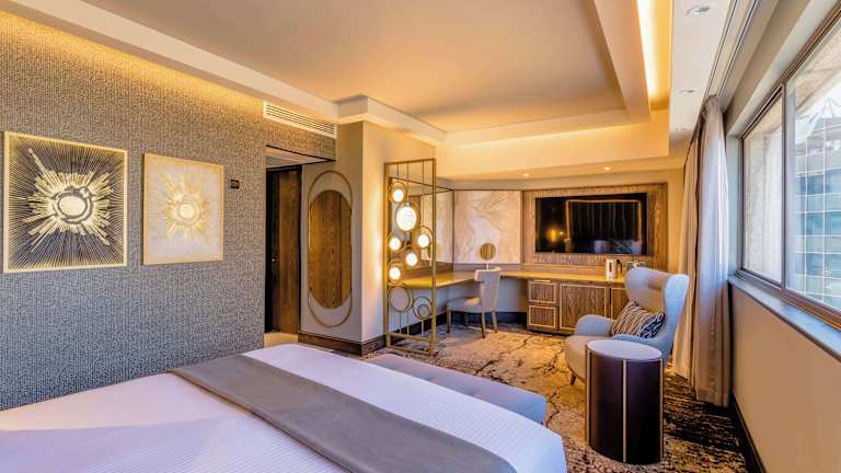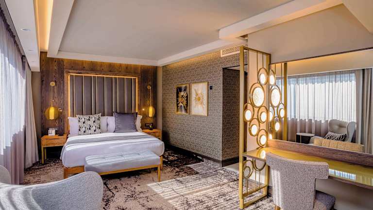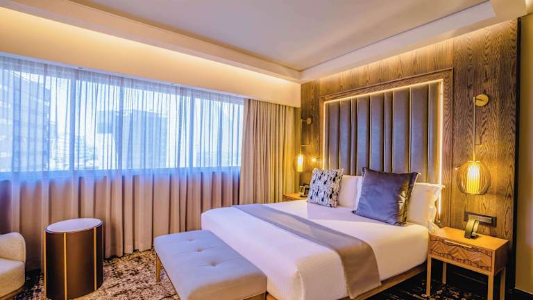 Die Zimmer sind mit modernen Annehmlichkeiten ausgestattet, darunter eine Klimaanlage, eine Minibar, ein Safe, ein Schreibtisch und WLAN ohne Gebühr. Die Badezimmer bieten sowohl eine Dusche als auch eine Badewanne. Rollstuhlgerechte Zimmer sind ebenfalls verfügbar, ebenso wie Familien-, Nichtraucher- und Raucherzimmer.