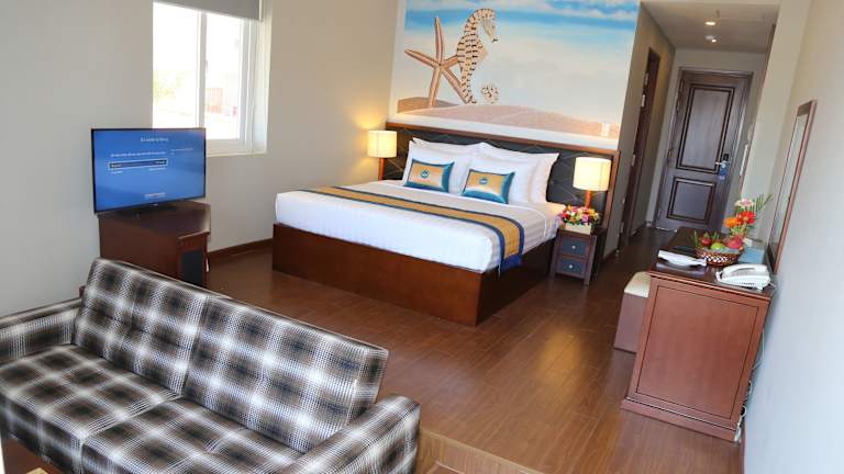 Das Sandunes Beach Resort ist eine luxuriöse Unterkunft in Mũi Né, die ihren Gästen einen unvergesslichen Aufenthalt bietet. Mit geräumigen Zimmern, Suiten und Bungalows, einem eigenen Strand, einem Außenpool und einem erstklassigen Restaurant erfüllt das Resort alle Wünsche seiner Gäste. Entspannen Sie bei einer Massage im Spa und erkunden Sie die umliegende Gegend mit Hilfe des Ticketservice und des Tourenschalters.