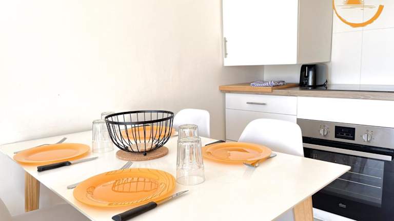 Die Ferienwohnung verfügt über 1 Schlafzimmer, ein Wohnzimmer, eine voll ausgestattete Küche mit Kühlschrank und Kaffeemaschine sowie ein Badezimmer mit Dusche und Haartrockner. Handtücher und Bettwäsche werden bereitgestellt. Die Unterkunft ist klimatisiert und bietet Nichtraucherzimmer.