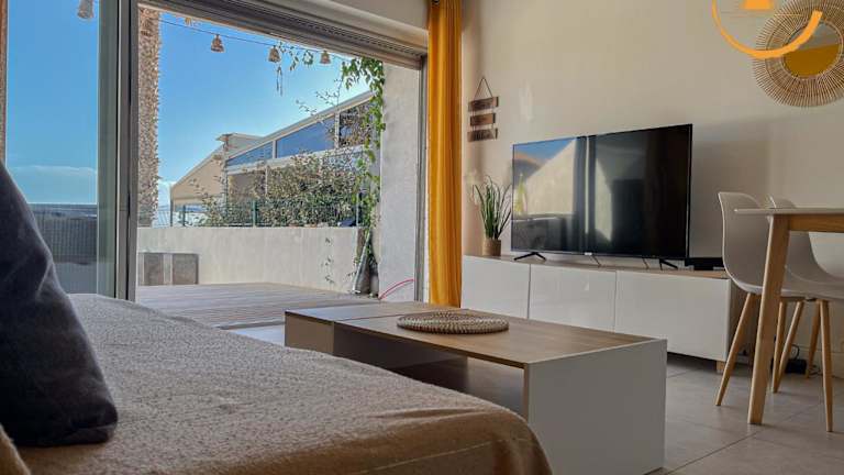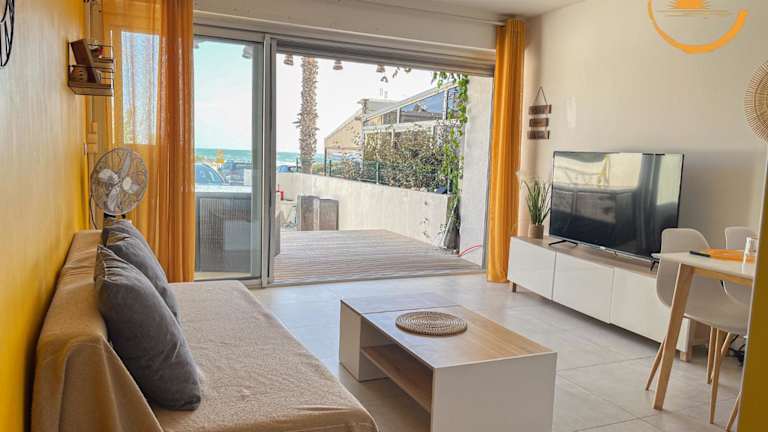 Sandy Beach - Acces direct plage LM Sud bietet Meerblick und direkten Zugang zum Strand. Die Unterkunft ist privat geführt und gewährleistet eine ruhige Atmosphäre. Check-in ist ab 15:00 Uhr möglich, und der Check-out ist bis 11:00 Uhr möglich. Es gelten die Richtlinien, dass keine Feiern wie Junggesellenabschiede erlaubt sind.